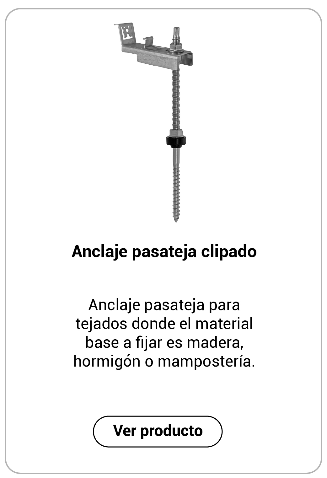 Anclaje pasateja para tejados donde el material base a fijar es madera, hormigón o mampostería.