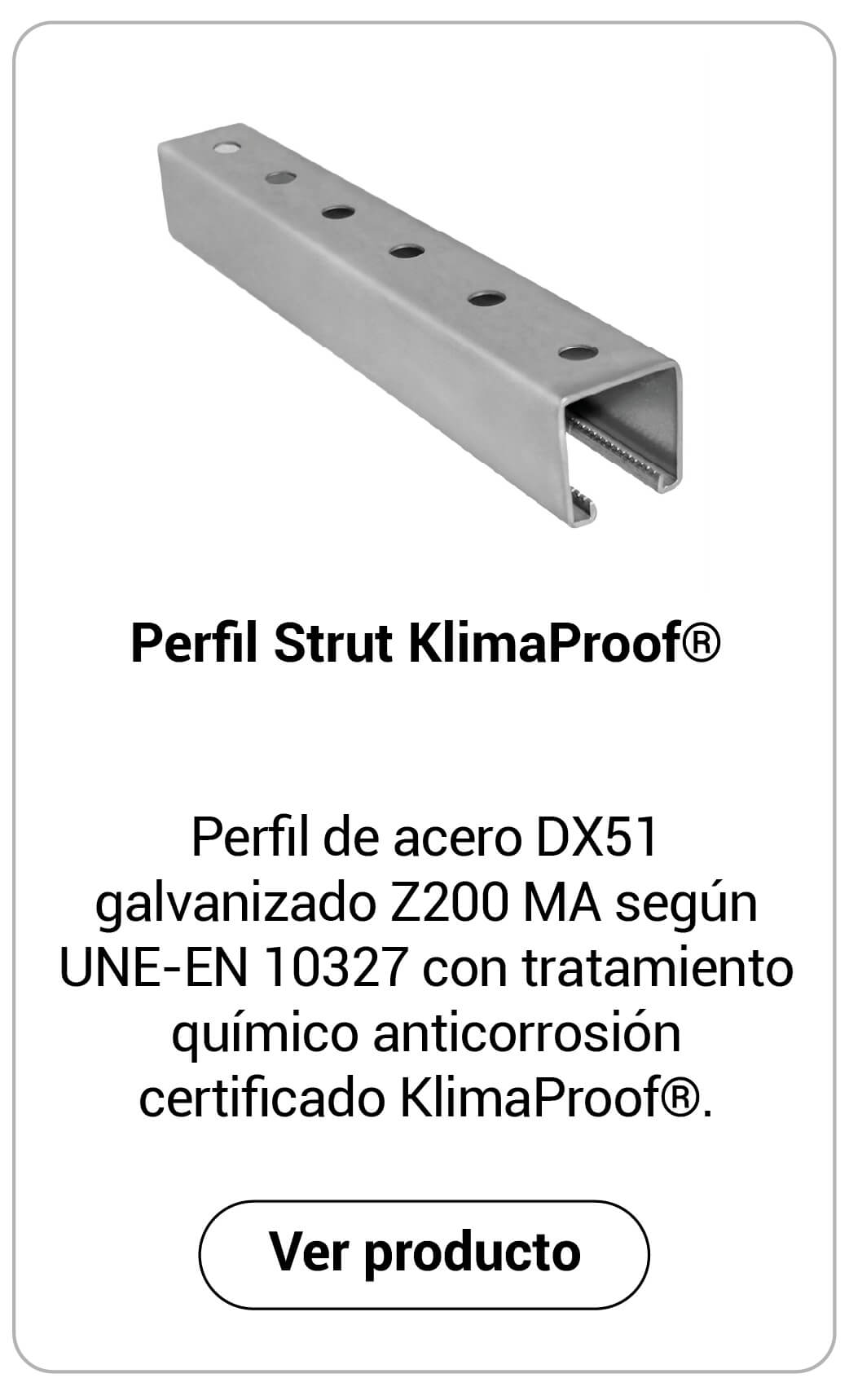 Perfil de acero DX51 galvanizado Z200 MA según UNE-EN 10327 con tratamiento químico anticorrosión certificado KlimaProof®.
