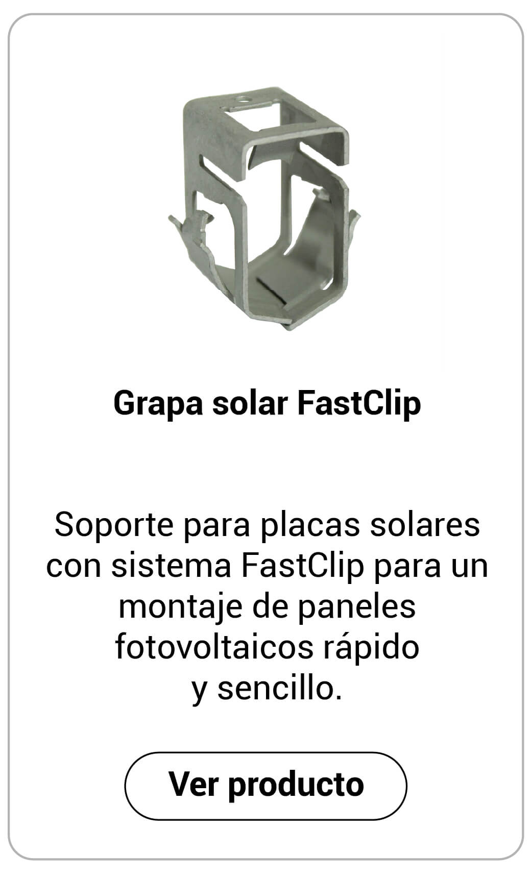 Soporte para placas solares con sistema FastClip para un montaje de paneles fotovoltaicos rápido y sencillo.
